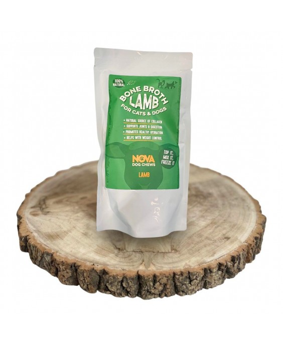 100 % bioloģisks jēra gaļas buljons jūsu sunim, bagātināts ar kolagēnu, kas palīdz uzturēt veselīgas locītavas un gremošanu.
