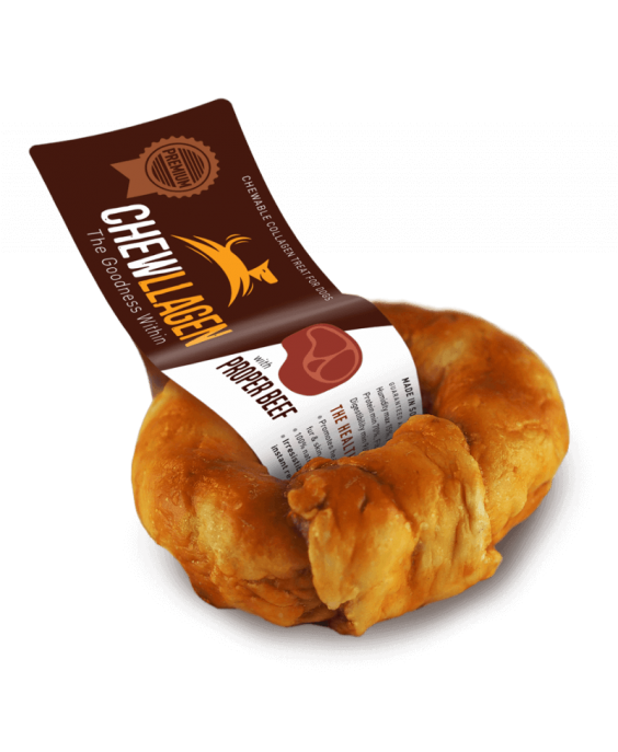 "Chewllagen" ir suņu našķis, kas izgatavots no kolagēna, kurš iegūts no Dienvidamerikas ar zāli barotu liellopu ādas. Kolagēna olbaltumvielas tiek hidrolizētas karsējot un sadalītas mazākās un vieglāk sagremojamās molekulās. Pēc tam kolagēns tiek veidots un cepts, piešķirot tam maizes konsistenci, un visbeidzot ietīts īstas liellopu gaļas loksnēs.