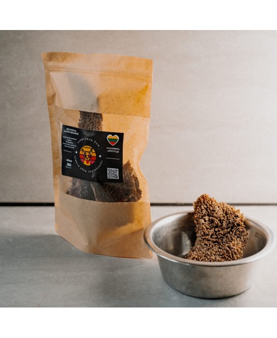 Dabīgais suņu kārums, kas gatavots no lietuviešu liellopu gaļas, ir ne tikai garšīgs, bet arī veselīgs našķis jūsu mīlulim. Liellopa kuņģī ir daudz dabīgu olbaltumvielu, vitamīnu un minerālvielu.