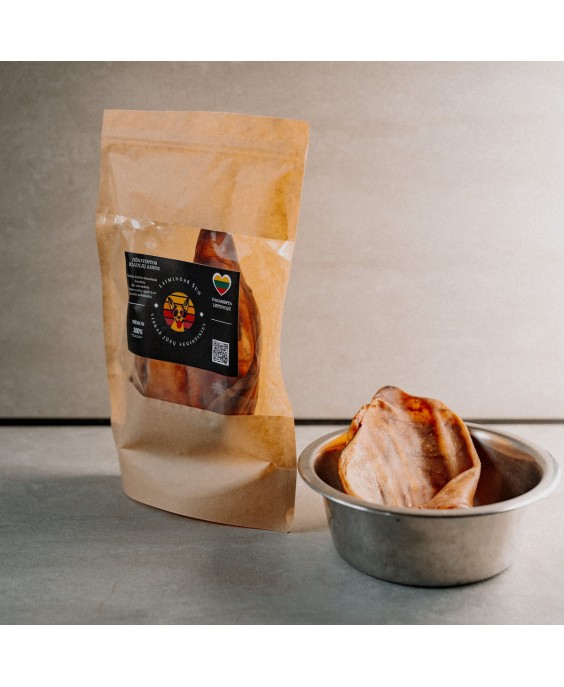 Dabisks kārums suņiem - kaltētas cūkas ausis. Tas ir 100% dabīgs kārums suņiem. Lielisks, pilnībā sagremojams košļājamais ēdiens jūsu mīlulim. Bez mākslīgām krāsvielām un konservantiem.