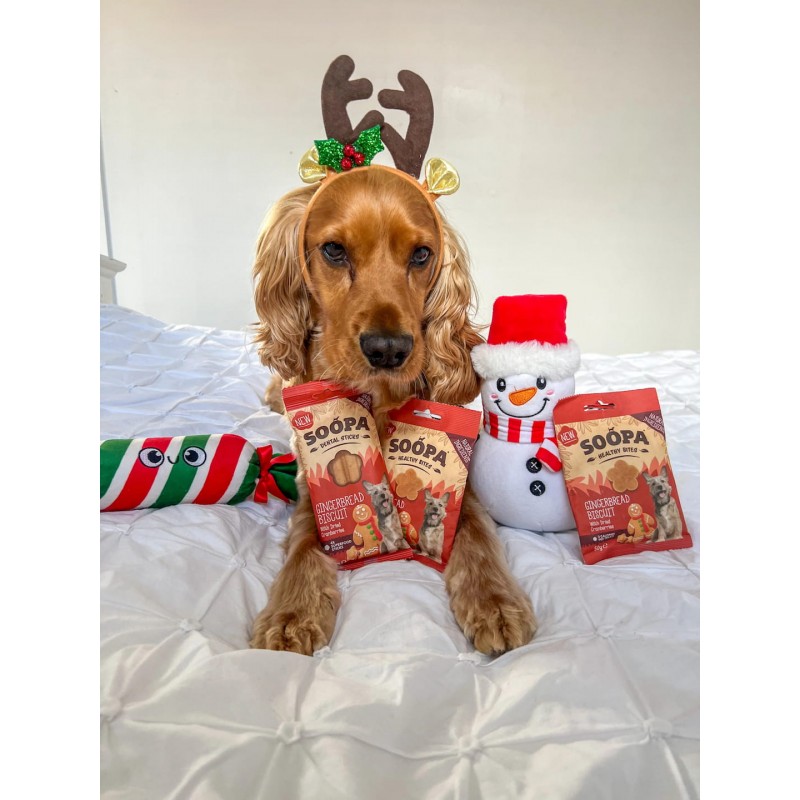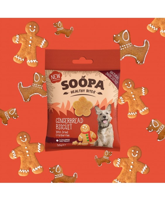 Svētku kārums! SOOPA piparkūku našķi ir ideāls ziemas našķis jūsu kucēnam! Izceptas ar nomierinošu ingveru un uzturvielām bagātām dzērvenēm, tās uzlabo gremošanu, mazina iekaisumus, nomierina kuņģi un uzlabo urīnceļu veselību. Pilni mājīgu, svētku garšu, šie našķi ir neaizstājams palīgs jūsu četrkājainajam draugam svētku laikā!