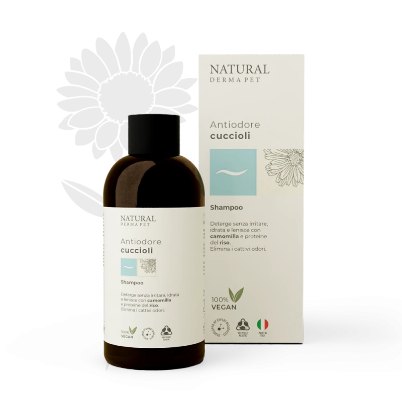 Maigā, nekairinošā formula saglabā dabisko jaunās kažokādas aizsardzību un novērš sausumu un kairinājumu. Šampūns ir bagātināts ar augu izcelsmes virsmaktīvajām vielām, hidrolizētiem rīsu proteīniem un kumelīšu ekstraktu, kas maigi attīra, baro un aizsargā jūsu kucēna ādu un kažoku. pH līdzsvarota formula nodrošina optimālu mitrināšanu un komfortu jutīgai ādai.