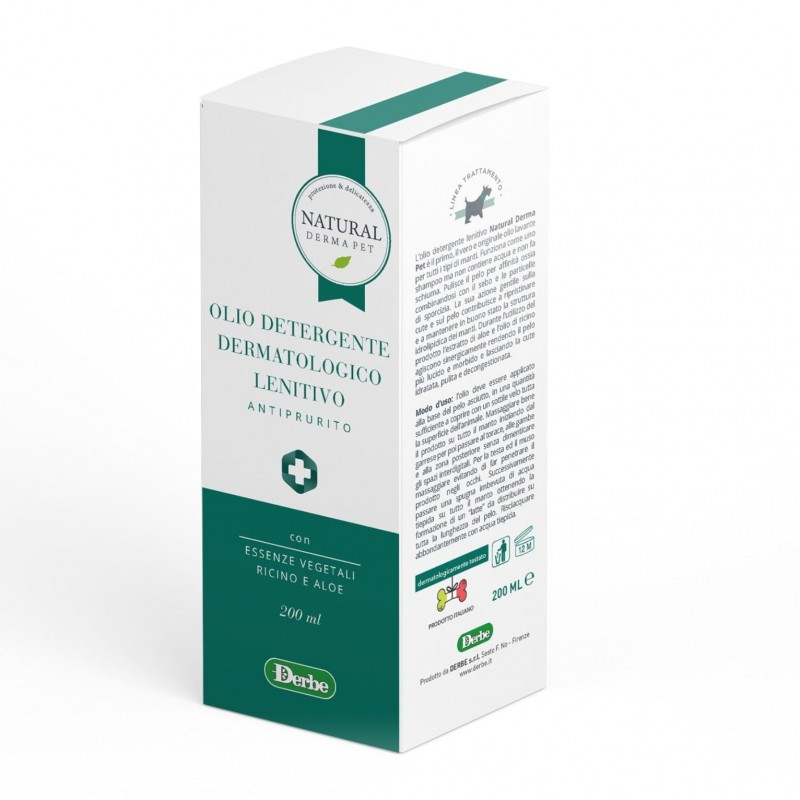 Šī dabīgā Derma Pet attīrošā eļļa ir izstrādāta, lai reaģētu uz jutīgas un kairinātas ādas īpašajām vajadzībām. Produkts palīdz mīkstināt un noņemt seborejas nogulsnes, blaugznas, kreveles un citus netīrumus, iedarbojoties maigi, nekairinot ādu. Formula ir bagātināta ar vērtīgām sastāvdaļām: alvejas ekstrakts nodrošina spēcīgu mitrināšanu un ādas nomierināšanu, palīdz saglabāt ādas elastību un barjeras funkciju, tādējādi mazinot niezes izraisīto diskomfortu. Sastāvā esošajai timiāna ēteriskajai eļļai un hlorofilīnam piemīt vieglas antibakteriālas un dezodorējošas īpašības, tāpēc kažoks ilgāk saglabājas svaigs. Tas ir ideāls līdzeklis mājdzīvniekiem, kas cieš no ādas kairinājuma, lobīšanās vai seborejas, palīdzot atjaunot veselīgu kažoka un ādas izskatu.
