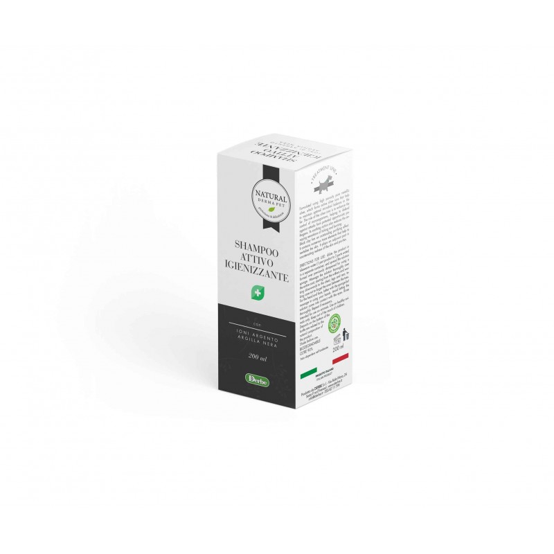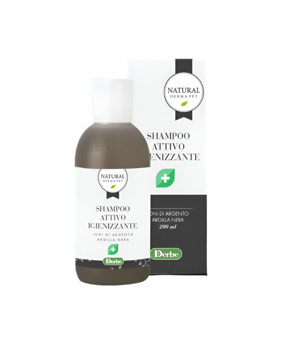 Natural Derma Pet Sanitizing Active Shampoo ir dermatoloģisks tīrīšanas līdzeklis, kas paredzēts veselīgas ādas floras atbalstam un diskomforta mazināšanai, ko izraisa kairinājums, apsārtums vai seborejas problēmas. Šī uzlabotā formula apvieno aktīvo sudraba jonu pretmikrobu un nomierinošo iedarbību ar melnā māla attīrošajām īpašībām. Augstas porainības metāliskais sudrabs pakāpeniski atbrīvo jonus, kas palīdz kontrolēt nevēlamus mikroorganismus, uzturēt optimālu ādas mikrobu ekosistēmu un palīdz samazināt infekciju risku. Sudraba joni arī mazina niezi un dedzināšanas sajūtu.