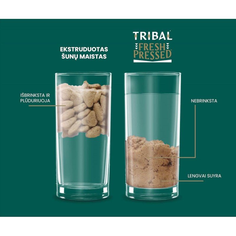 - Aukstā spieduma - saudzīgi pagatavots, lai saglabātu uzturvielas un nodrošinātu optimālu gremošanu. Šis unikālais gatavošanas process nozīmē, ka Fresh Pressed™barība kuņģī neuzbriest kā tradicionālā mājdzīvnieku barība un viegli sadalās.