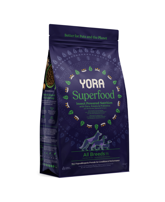 Yora visu šķirņu barība ar kukaiņu olbaltumvielām.