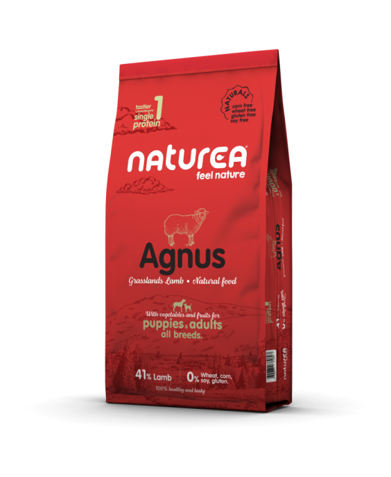 NATUREA NATURALS Adult and Puppies Agnus Lamb ir augstākās kvalitātes barība suņiem, kas pagatavota no jēra gaļas, ko papildina vērtīgi brūnie rīsi, augļi, dārzeņi, garšaugi un garšvielas, kā arī jūras aļģes. Tā ir piemērota visu šķirņu pieaugušiem un jauniem suņiem.