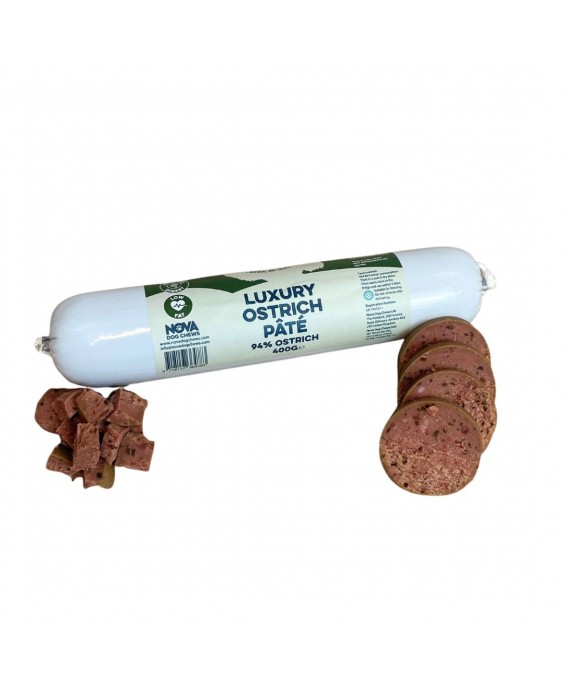 Visu vecumu suņi var izbaudīt Luxury Ostrich Pate Turcijas pastētes, kas ir barojoša un nesatur mākslīgas piedevas. Piemērots kucēniem, vecākiem suņiem un tiem, kuriem ir grūti tikt galā ar cietākiem kārumiem.