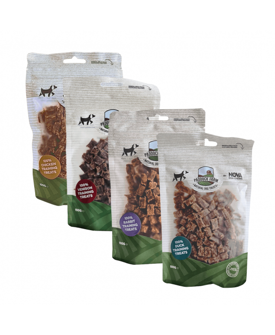 Mēs zinām, ka jebkura treniņa vai treniņa laikā, ja mūsu suņi ir pozitīvi motivēti, viņi, visticamāk, darīs visu iespējamo. "Paddock Farm" klāsts ir garšīga un veselīga balva, kas pagatavota vienkārši no 100% medījuma gaļas - tas ir viss!