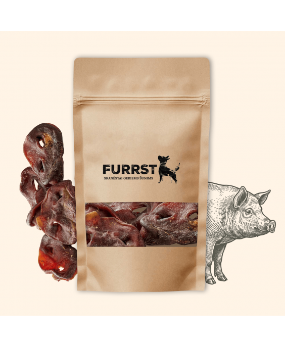 FURRST kaltētas cūkgaļas šķēles ir 100% dabīgas, bez piedevām košļājamas, kas nodrošina vidēji ilgu košļājamo vielu jūsu sunim. Lai gan cūkgaļa bieži tiek saistīta ar augstāku kaloriju saturu, šis kārums ir izņēmums – tas satur tikai 7% tauku! Cietākā tekstūra efektīvi palīdz tīrīt zobus, masē smaganas un apmierina suņa dabisko košļāšanas instinktu, nepievienojot papildu kalorijas.